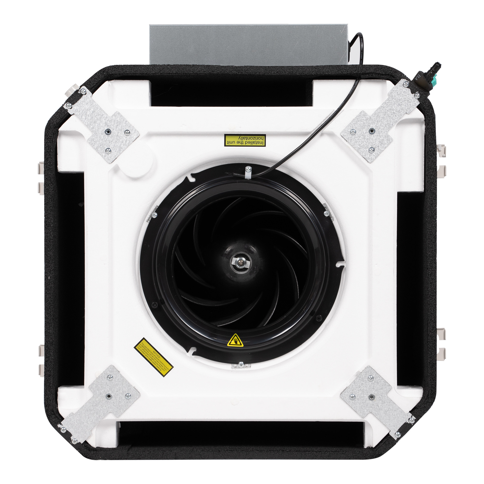 Кассетные блоки обладают встроенной дренажной помпой, а панели обеспечивают круговое распределение воздуха 360 грудусов.