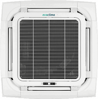 Кассетный внутренний блок кондиционера встраивается в подвесной потолок, чаще всего в центральной части помещения. Такой подход экономит жилое пространство. Имеется возможность регулировки воздушного потока.