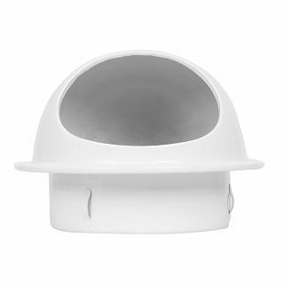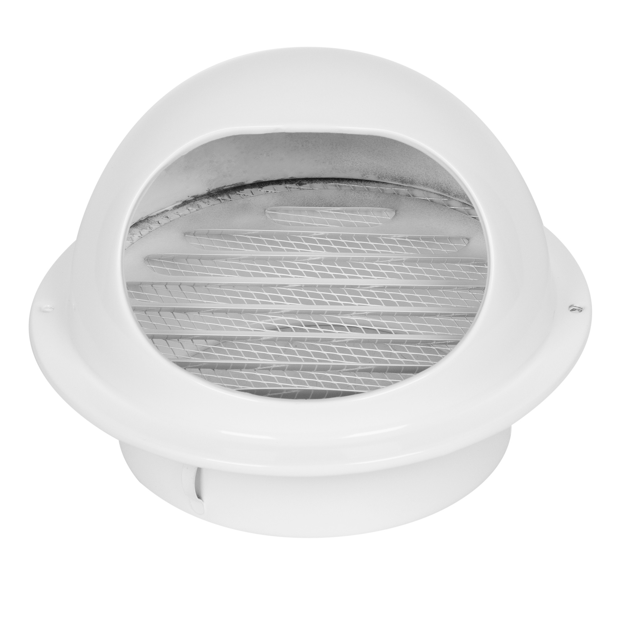 Решетка предназначена для защиты круглых канальных вентиляторов и другого оборудования от попадания осадков и посторонних предметов извне. Монтируется на наружных стенах в вентиляционные каналы круглого сечения. Жалюзи должны быть направлены вниз. Решетка изготовлена из оцинкованной стали, состоит из неподвижные жалюзи с рамкой и козырьком, окрашена в белый цвет.