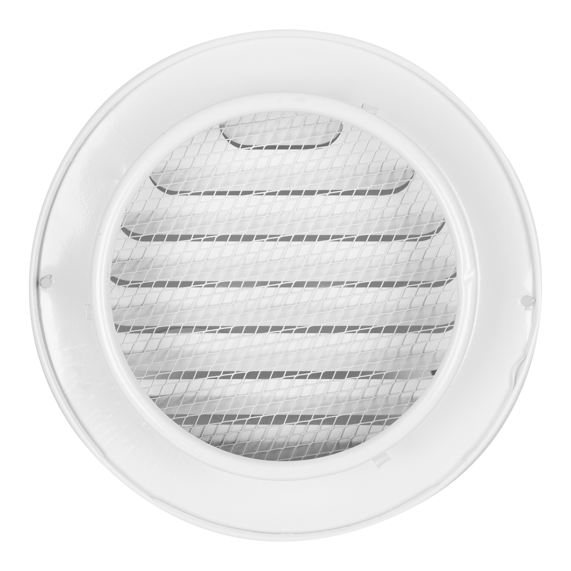 Решетка предназначена для защиты круглых канальных вентиляторов и другого оборудования от попадания осадков и посторонних предметов извне. Монтируется на наружных стенах в вентиляционные каналы круглого сечения. Жалюзи должны быть направлены вниз. Решетка изготовлена из оцинкованной стали, состоит из неподвижные жалюзи с рамкой и козырьком, окрашена в белый цвет.