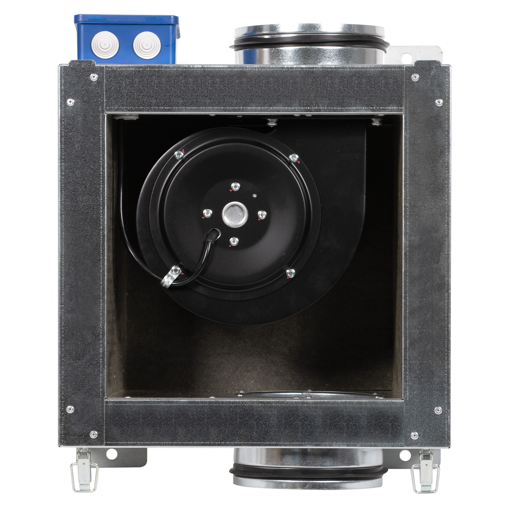 Корпус вентиляторов серии ICF VIM изготовлен из оцинкованной листовой стали с 50-мм слоем звуко- и теплоизоляции. Откидная крышка на петлях легко открывается, что упрощает обслуживание вентилятора.